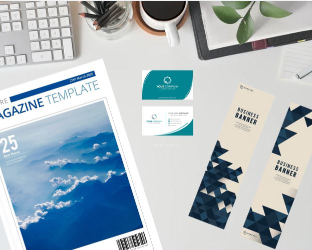 Cartes de visite brochures, affiches, flyers, catalogues, enveloppe et papeterie, magazines…